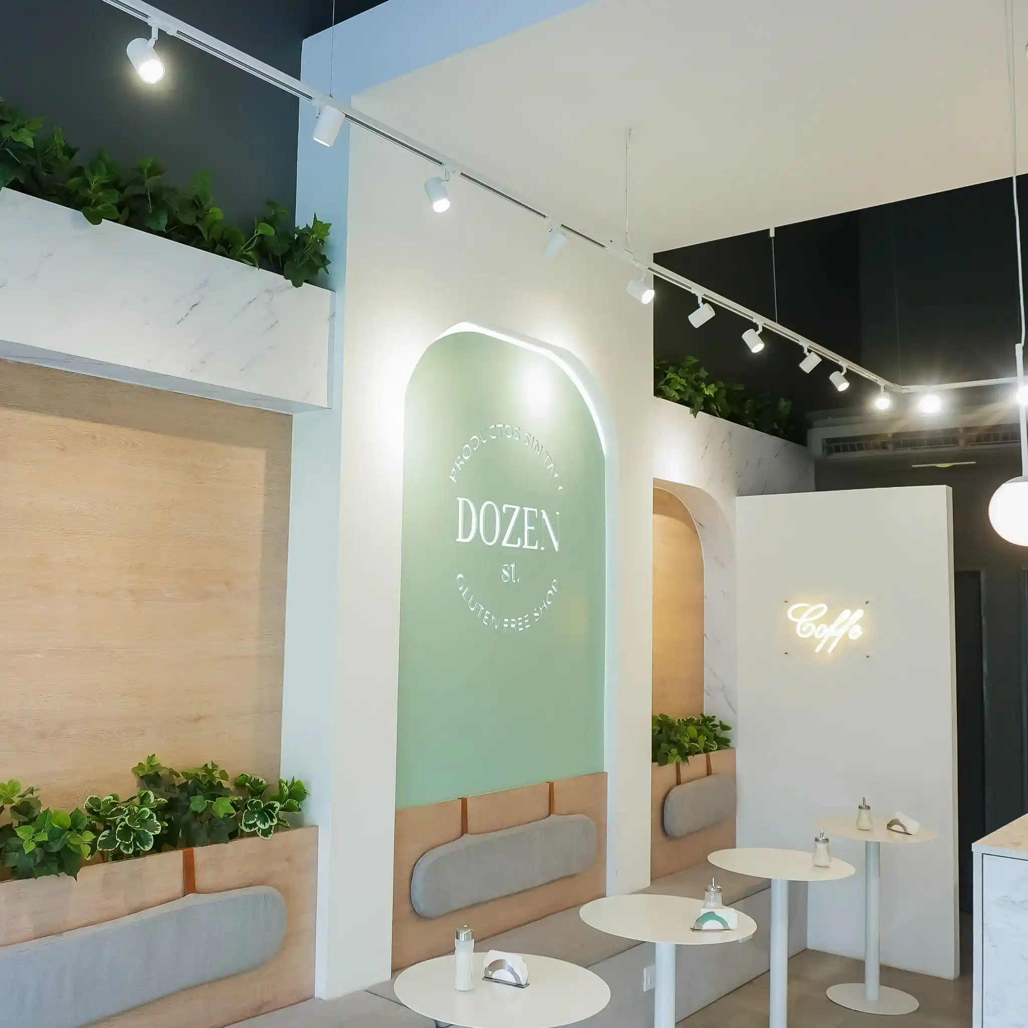 Este diseño para panadería busca transmitir frescura, calidez y un ambiente acogedor mediante el uso de tonos suaves y cálidos, destacando el verde pastel como color principal. Un espacio donde la suavidad del color no solo invita a los clientes a sentirse cómodos, sino que también refleja la identidad de la marca.